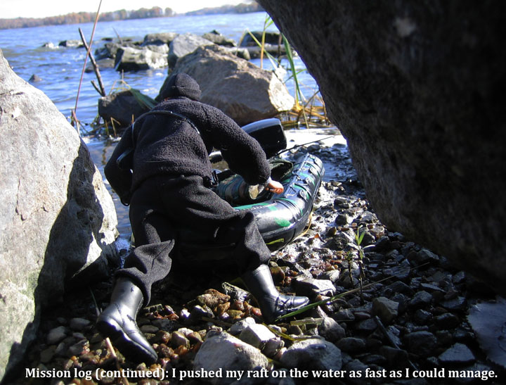I always wanted to do a Secret Mission to Spy Island type story. I remember fondly my Secret Mission to Spy Island G.I.Joe play set I got as a child. I tried to reproduce the scenes from the mini comic book that came with the set, when playing with it in my childhood, but couldn't exactly, because the set was the later one with the black pants and black knitted sweater, while the comic was the first version which featured a beardless G.I.Joe in Action Marine camouflage outfit, which did not match what was in the packaging. As it were, I think the first comic is better drawn and less racist than the second one they made, with a bearded Adventurer in the black outfit, where the bad guys, rather than being Russian, were villains with caricatured Chinese-like features. Since I didn't keep any of those old G.I.Joe sets and accessories, I recreated that black clad Spy Island set with my reproduction Sea Adventurer and Cobra Island raft with outboard motor. It's not ideal, since I couldn't take nighttime pictures on the shore of the local river, while crouching on rocks by the water, holding the camera without dropping it in the river. Not enough light to do that when it's dark, or even late in the day, so it had to be in daytime. I also didn't have time to plan and reproduce the shots from the comic, the way I wanted. I just had a Saturday morning this fall to pull it off and that was a stretch as it is. Even so, I'm still glad I got this story out of my system. I did another with my reproduction Action Marine G.I.Joe, to match the look from the comic I still have from the original Secret Mission to Spy Island play set that I had as a kid. I'll be posting that story later this weekend.